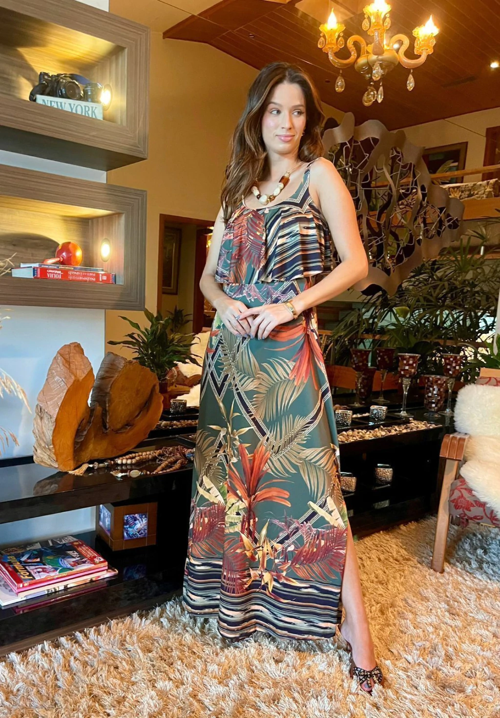 Destaque-se com o charme do babado estrategicamente colocado neste vestido. Além de adicionar um toque de feminilidade e sofisticação, o babado também possui um truque visual: ele alonga sua figura e afina a cintura. Com esse detalhe cuidadosamente projetado, você se sentirá confiante e bela onde quer que vá. Seja em um evento especial ou em uma reunião casual com amigos, este vestido se adapta perfeitamente a todas as ocasiões.